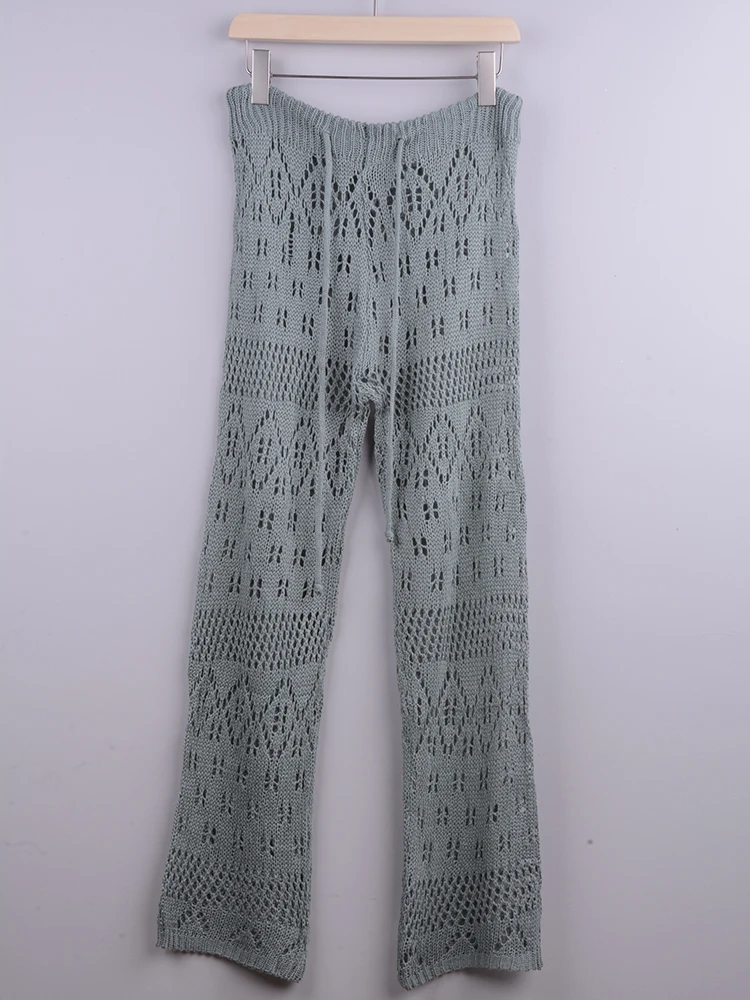 Womens Crochet Hollow Beach Pants Pure Color Casual Elegant Waist Drawstring Swimsuit Cover Up Pants Fruugo Pt